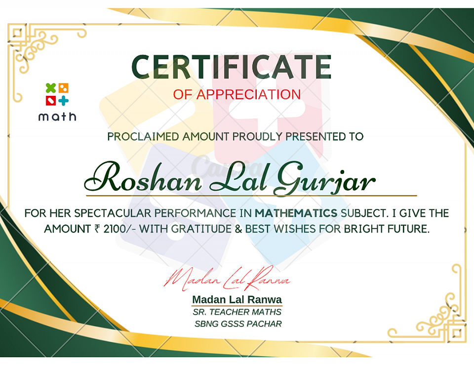 माध्यमिक बोर्ड परीक्षा 2024 में गणित विषय में 100 में से 100 लाने पर 2100 rs का पुरस्कार